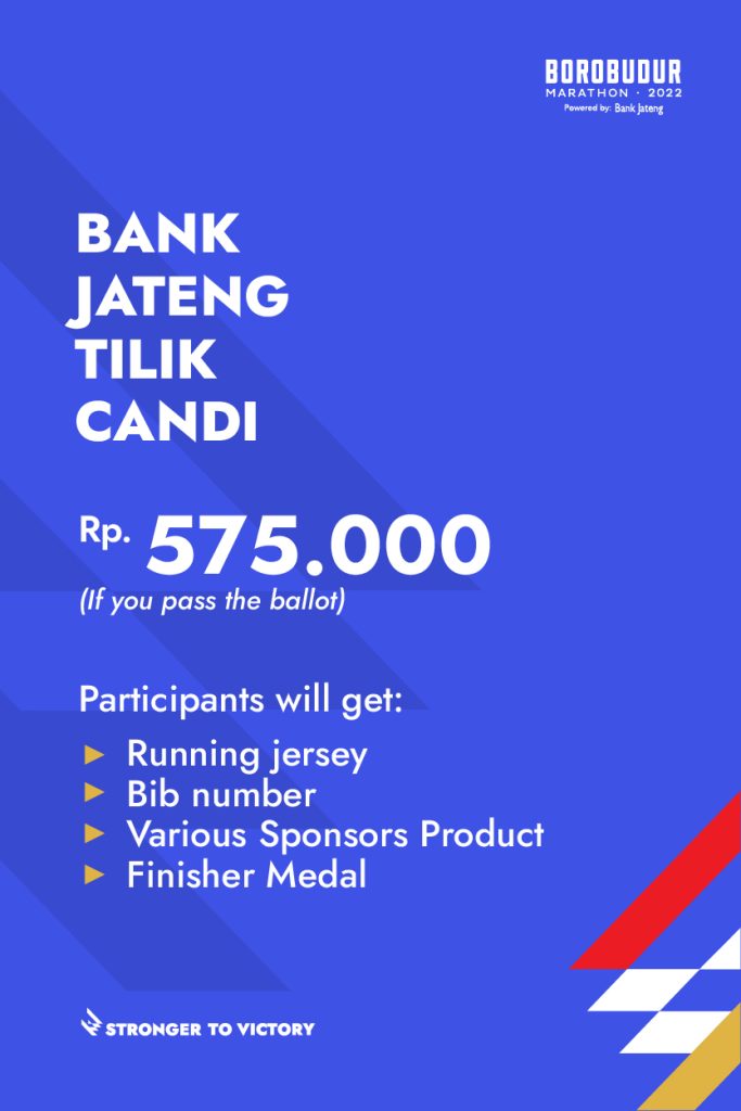 Bank Jateng Tilik Candi is one of four races in 2022 Borobudur Marathon. Bank Jateng Tilik Candi is a dedication program by Bank Jateng with Kompas Daily to treat runners’ longing for offline racing and ignite enthusiasm to return to active running. This year Bank Jateng Tilik Candi welcoming runners with offline running competition for half marathon distance in Magelang on Sunday, November 13th 2022.